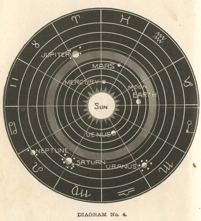 This shows the sun and its family of worlds in their relative relations to each other in their circuit around their common centre and through the twelve signs of the zodiac. For further particulars, see page 40.