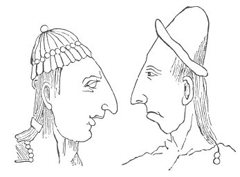 Both illustrations at the bottom of the preceding page show the same receding form of the forehead, due to either artificial deformation of the skull or
