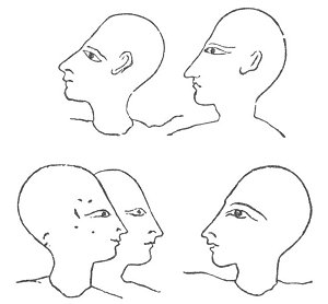 The annexed ancient Egyptian heads, copied from the monuments, indicate either that the people of the Nile deformed their heads by pressure upon the front of the skull, or that