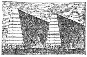 Not only do we find pyramidal structures of earth in the Mississippi Valley very much like the pyramids of Egypt, Mexico, and Peru, but a very singular structure is repeated in Ohio and Peru: I refer to the double walls or prolonged pyramids, if I may coin an expression, shown in the cut page 375.
