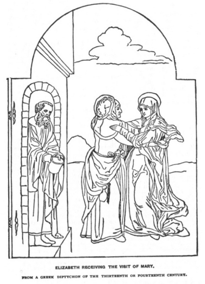 ELIZABETH RECEIVING THE VISIT OF MARY. FROM A GREEK DIPTYCHON OF THE THIRTEENTH OR FOURTEENTH CENTURY.