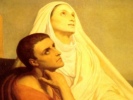 But now it spake very faintly. For on that side whither I had set my face, and whither I trembled to go, there appeared unto me the chaste dignity of Continency, serene, yet not relaxedly, gay, honestly alluring me to come and doubt not; and stretching forth to receive and embrace me, her holy hands full of multitudes of good examples: there were so many young men and maidens here, a multitude of youth and every age, grave widows and aged virgins; and Continence herself in all, not barren, but a fruitful mother of children of joys, by Thee her Husband, O Lord. And she smiled on me with a persuasive mockery, as would she say, "Canst not thou what these youths, what these maidens can? or can they either in themselves, and not rather in the Lord their God? The Lord their God gave me unto them. Why standest thou in thyself, and so standest not? cast thyself upon Him, fear not He will not withdraw Himself that thou shouldest fall; cast thyself fearlessly upon Him, He will receive, and will heal thee." And I blushed exceedingly, for that I yet heard the muttering of those toys, and hung in suspense. And she again seemed to say, "Stop thine ears against those thy unclean members on the earth, that they may be mortified. They tell thee of delights, but not as doth the law of the Lord thy God." This controversy in my heart was self against self only. But Alypius sitting close by my side, in silence waited the issue of my unwonted emotion.