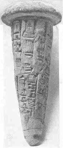 | Inscribed cone of Ur-Nammu which was inserted in the vertical joint of one of his buildings. (See page 276.) | An arched doorway in the north-east wall of the sanctuary of E-Dublal-maḫ. Of the time of Kuri-Galzu, about 1600 B.C. (See page 277.) |