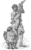 A noise of voices and falling coins drew her attention; it was Theano who, to mimic her sister, had taken the fancy, amidst laughter and cries, to parody the Fable of Danæ. The saucy impiety of the child amused all the feasters, for it was long past the time when a thunderbolt would have exterminated mockers of the Immortal. But the play was broken up, as might be expected.