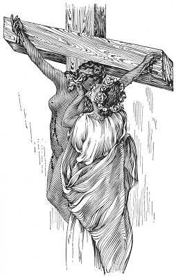A glance, already nearly blind, touched him for an instant. But the head turned always. The body trembled without pause. Softly, as though he feared that the sound of his steps might give her pain, the young man advanced to the foot of the cross. He stretched out his arms, took the feeble, turning head gently between his two brotherly hands, piously put aside along the cheeks the tear-matted hair, and placed upon the warm lips an infinitely tender kiss.