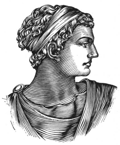On this apparel of mourning, Demetrios sees only the hair, like a golden vase upon an ebony column. He recognizes Chrysis.