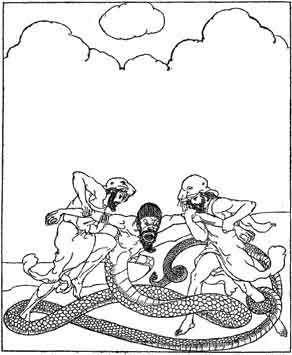 "When my father, the Ancient One of the Sea, comes here to sleep, lay hands upon him and hold him with all the strength you have. He will change himself into many shapes, but do not you let go your hold upon him. When he changes back into the shape he had at first you may let go your holds. Question him then as to how you may leave this place, or question him as to any other matter that may be on your mind, and he will answer you, speaking the truth."