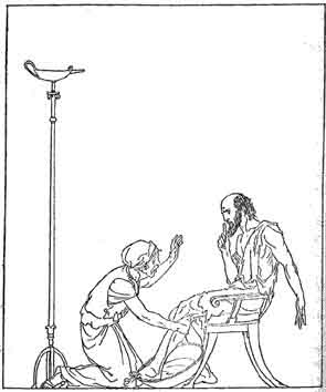 Said Odysseus, Thy handmaidens would be loath to touch the feet of a wanderer such as I. But if there is in the house some old wife who has borne such troubles as I have borne, I would have my feet bathed by her.