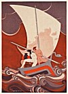 with this my handiwork. But take heed thou draw not too nigh the Virgin of Tegea, or to Orion, who, girt with his sword, doth bear Boötes company. Shape thy course on mine. I will lead the way; be content to follow me; with me to guide thee, thou wilt have nought to fear. For, if in our airy flight we soared too near the sun, the wax of our wings would never bear the heat, and if we flew too low, the moisture of the sea would weight our wings and make them over-heavy for us to move. Fly then midway between; and O, my son, beware the winds. Whithersoever they may blow, thither let them waft thee." Thus he spake, and fitted the wings upon his son's young shoulders and showed him how to move them, even as the mother bird teaches her feeble fledglings how to fly. That done, he fixes wings on to his own shoulders and, half eager, half timid, launches himself on the unfamiliar track. Ere he begins his flight, he kisses his son, and down the old man's cheeks the tears unbidden flow.