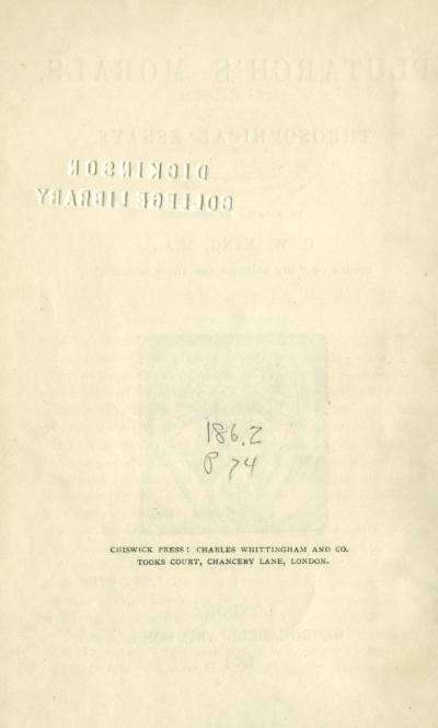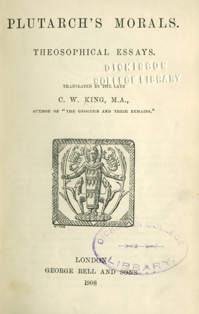 Plutarch's Morals: Theosophical Essays, tr. by Charles William King, [1908], at sacred-texts.com