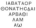 It is very remarkable, considering its high repute, that no Gnostic stone bearing such an inscription should be known to exist. On the other hand that normal address to Iao, ΑΒΛΑΝΘΑΑΛΒΑ, "Thou art our Father!" is so found on talismanic jaspers arranged in the exact pattern recommended by