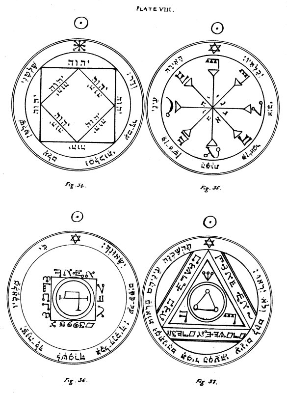 Figure 34.--The Third Pentacle of the Sun.--This serveth in addition (to the effects of the two preceding) to acquire Kingdom and Empire, to inflict loss, and to acquire renown and glory, especially through the Name of God, Tetragrammaton, which therein is twelve times contained.