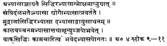 Perfect consciousness is gained through practice; Yoga is attained through practice; success in mudrâs comes by practice. Through practice is gained success in Prâṇâyâma. Death can be evaded of its prey through practice, and man becomes the conqueror of death by practice. And then let us gird up our loins, and with a firm resolution engage in the practice, having faith in