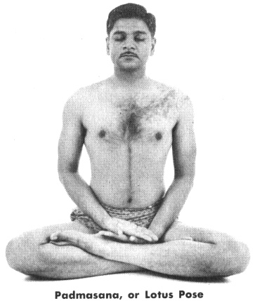 The traditional meditative posture, the Padmasana, or Lotus Pose, is essential for posture training, body-free meditation and preserving normal elasticity of the muscles connected with the pelvis and lower extremities. As noted previously, those who have been raised in the Western culture are stiff and lack flexibility in their legs and lower bodies. This must be corrected in order to restore natural suppleness of the limbs. The Lotus Pose may at first be a bit difficult, but with regular practice, massage of the limbs and determination, it can be achieved. Avoid undue strain and do not force yourself into this by violent jerks or tension of your legs. When you are ready for it, your body will fall naturally into the desired posture.