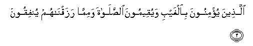 3. Allatheena yu/minoona bialghaybi wayuqeemoona alssalata wamimma razaqnahum yunfiqoona