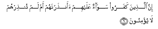 6. Inna allatheena kafaroo sawaon AAalayhim aanthartahum am lam tunthirhum la yu/minoona