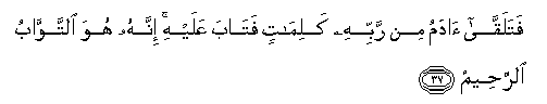 37. Fatalaqqa adamu min rabbihi kalimatin fataba AAalayhi innahu huwa alttawwabu alrraheemu
