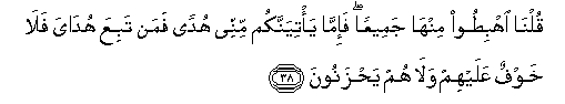 38. Qulna ihbitoo minha jameeAAan fa-imma ya/tiyannakum minnee hudan faman tabiAAa hudaya fala khawfun AAalayhim wala hum yahzanoona