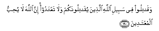 190. Waqatiloo fee sabeeli Allahi allatheena yuqatiloonakum wala taAAtadoo inna Allaha la yuhibbu almuAAtadeena