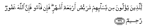 226. Lillatheena yu/loona min nisa-ihim tarabbusu arbaAAati ashhurin fa-in faoo fa-inna Allaha ghafoorun raheemun