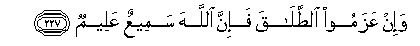 227. Wa-in AAazamoo alttalaqa fa-inna Allaha sameeAAun AAaleemun