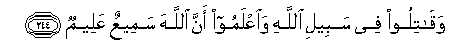 244. Waqatiloo fee sabeeli Allahi waiAAlamoo anna Allaha sameeAAun AAaleemun