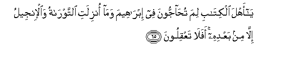65. Ye People of the Book! Why dispute ye about Abraham, when the Law and the Gospel Were not revealed Till after him? Have ye no understanding?