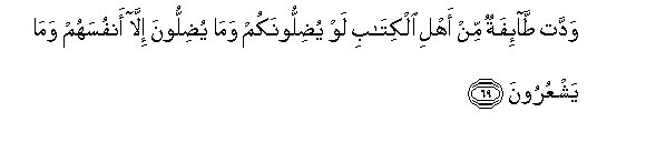 69. Waddat ta-ifatun min ahli alkitabi law yudilloonakum wama yudilloona illa anfusahum wama yashAAuroona