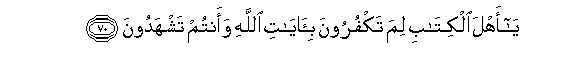 70. Ya ahla alkitabi lima takfuroona bi-ayati Allahi waantum tashhadoona
