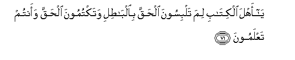 71. Ya ahla alkitabi lima talbisoona alhaqqa bialbatili wataktumoona alhaqqa waantum taAAlamoona