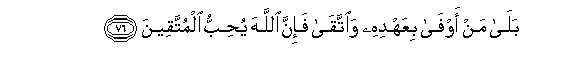 76. Bala man awfa biAAahdihi waittaqa fa-inna Allaha yuhibbu almuttaqeena