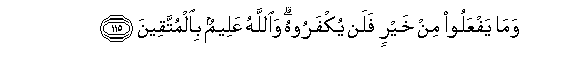 115. Wama yafAAaloo min khayrin falan yukfaroohu waAllahu AAaleemun bialmuttaqeena