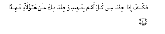 41. Fakayfa itha ji/na min kulli ommatin bishaheedin waji/na bika AAala haola-i shaheedan