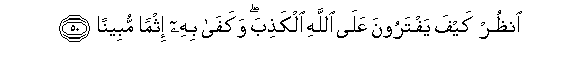 50. Onthur kayfa yaftaroona AAala Allahi alkathiba wakafa bihi ithman mubeenan