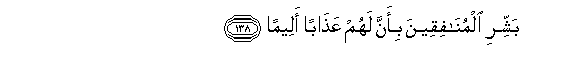 138. Bashshiri almunafiqeena bi-anna lahum AAathaban aleeman