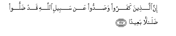 167. Inna allatheena kafaroo wasaddoo AAan sabeeli Allahi qad dalloo dalalan baAAeedan