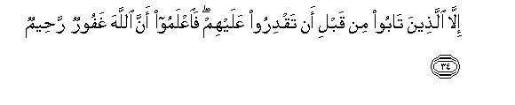 34. Except for those who repent before they fall into your power: in that case, know that God is Oft-forgiving, Most Merciful.