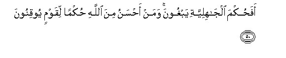 50. Afahukma aljahiliyyati yabghoona waman ahsanu mina Allahu hukman liqawmin yooqinoona
