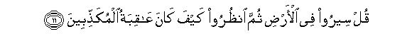 11. Qul seeroo fee al-ardi thumma onthuroo kayfa kana AAaqibatu almukaththibeena