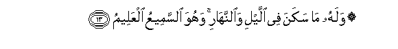 13. Walahu ma sakana fee allayli waalnnahari wahuwa alssameeAAu alAAaleemu