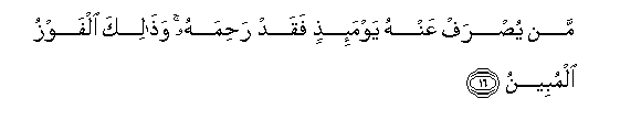 16. Man yusraf AAanhu yawma-ithin faqad rahimahu wathalika alfawzu almubeenu