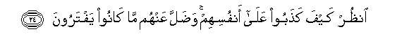 24. Onthur kayfa kathaboo AAala anfusihim wadalla AAanhum ma kanoo yaftaroona