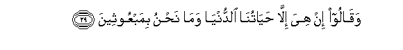 29. Waqaloo in hiya illa hayatuna alddunya wama nahnu bimabAAootheena