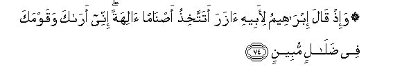 74. Wa-ith qala ibraheemu li-abeehi azara atattakhithu asnaman alihatan innee araka waqawmaka fee dalalin mubeenin