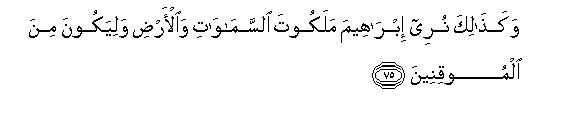 75. Wakathalika nuree ibraheema malakoota alssamawati waal-ardi waliyakoona mina almooqineena
