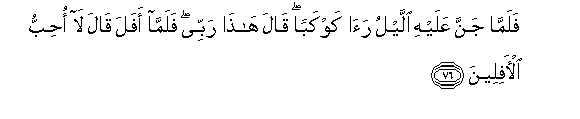 76. Falamma janna AAalayhi allaylu raa kawkaban qala hatha rabbee falamma afala qala la ohibbu al-afileena