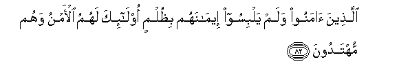 82. Allatheena amanoo walam yalbisoo eemanahum bithulmin ola-ika lahumu al-amnu wahum muhtadoona