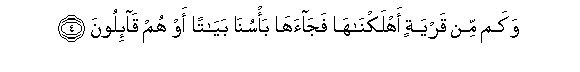4. Wakam min qaryatin ahlaknaha fajaaha ba/suna bayatan aw hum qa-iloona