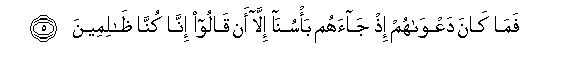 5. Fama kana daAAwahum ith jaahum ba/suna illa an qaloo inna kunna thalimeena