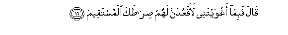 16. Qala fabima aghwaytanee laaqAAudanna lahum sirataka almustaqeema
